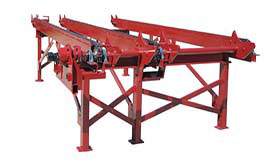 Meadows Log Decks are available in two, three or four strand configurations. Total width and strand spacing can be adjusted based on customer preference. Standard equipment includes heavy steel construction with UHMW wear strips and automatic stop and load. Optional controls and hydraulic hoses are available. Meadows Log Decks can also be wheel mounted for mobile applications.